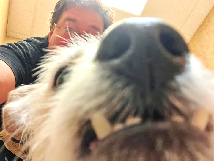 Fun. Yeah, I can do fun. So, fun. Monday, 11 p.m.-ish, just before turning in, I put the dogs out, the final time, in anticipation of then sitting up the night just trying to sleep, propped against a bank of pillows, with my just-refreshed, taped-on, blood-catch gauze mustache. You see: Midafternoon that same day, a …