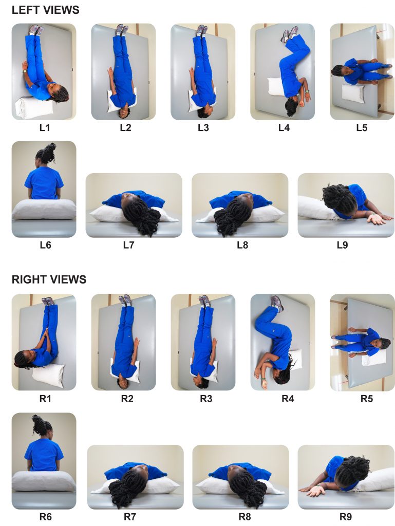 This set of final photos is essentially a contact sheet for the rehab director to check patient positioning.
